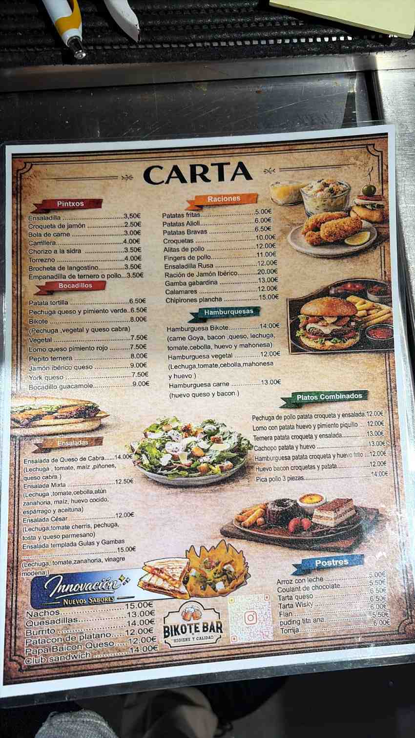 Bikote Bar es un negocio familiar y eso se nota en el trato, en la forma de recibir a cada cliente y en el cuidado que ponemos en cada plato. Nos gusta ofrecer una cocina honesta, sabrosa y generosa, elaborada con buena materia prima y con una propuesta que une pintxos, raciones, desayunos, hamburguesas, platos caseros y especialidades con inspiración latina.